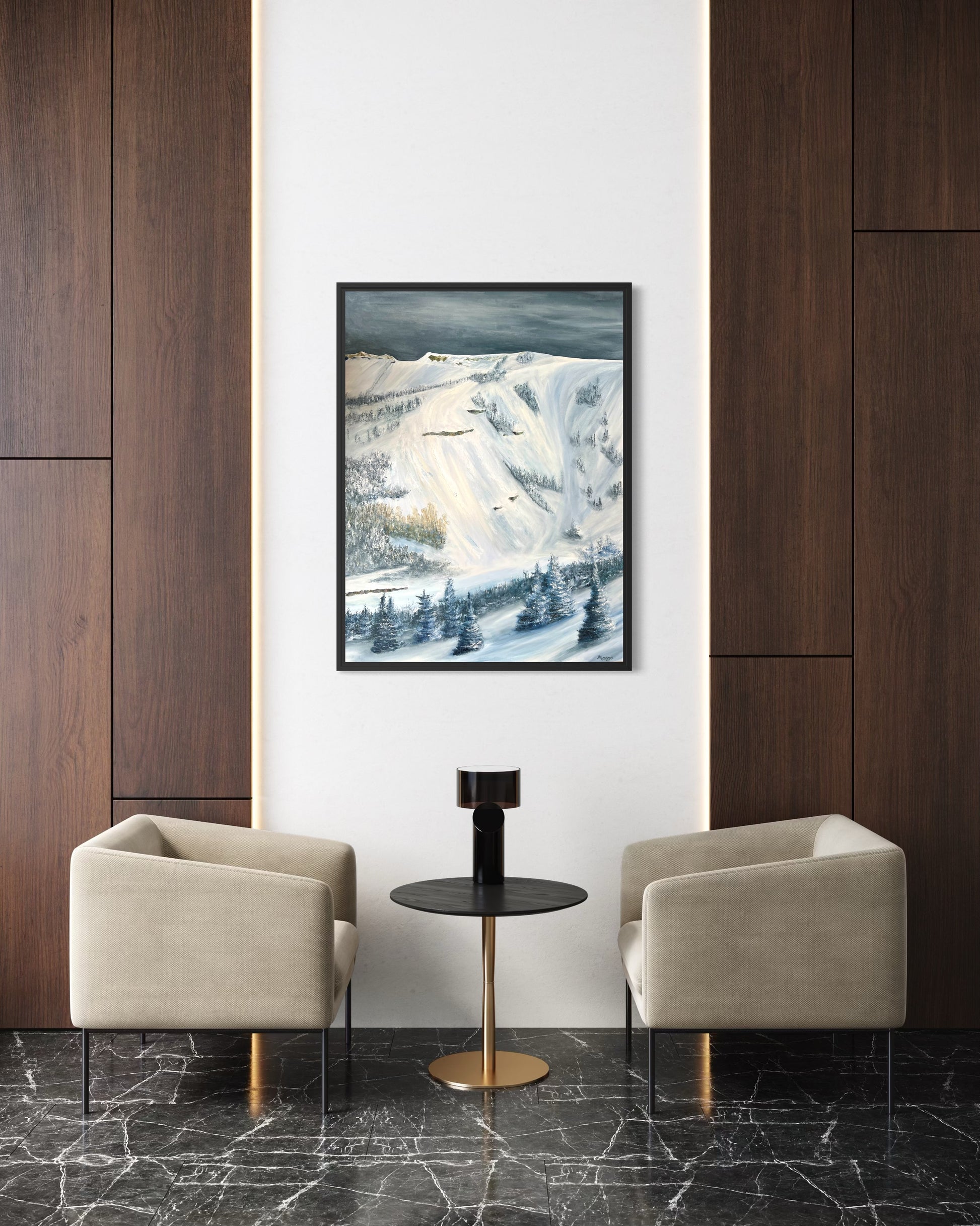 The storm has passed, leaving behind a scene of pure alpine magic. Margo's After the Storm series captures that rare, silent moment when the world is newly blanketed in snow — untouched, pristine, and full of promise for fresh tracks. The light is subdued and moody beneath a canopy of clouds, lending a soft, silvery tone to the mountain. This series portrays calm after chaos — where nature exhales, and Vail’s beauty reveals itself in its quietest, most ethereal form.